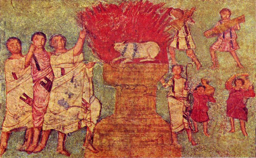 | Keywords: Dura Europos fresco worshipping gold calf.jpg Worshipping to gold calf Fresco from Dura Europos synagogue http //www flickr com/photos/becklectic/85325024/ 244-256 CE made by photographer Becklectic PD-old-100 Dura-Europos synagogue painting Golden calf |