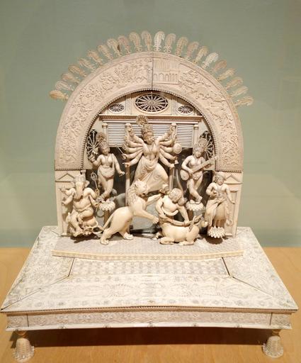 Keywords: Durga Mahishasuramardini by Toolsee Ram, view 1, India, Bengal, 1836, ivory and mirror - Berkeley Art Museum and Pacific Film Archive - DSC04158.JPG en Exhibit in the Berkeley Art Museum and Pacific Film Archive 2625 Durant Avenue 2250 Berkeley California USA This museum is part of the University of California Berkeley This artwork is in the public domain because the artist died more than 70 years ago Photography of this exhibit was permitted without restriction 2013-11-14 16 59 44 own Daderot other versions cc-zero Uploaded with UploadWizard Sculptures from India in the Berkeley Art Museum and Pacific Film Archive Durga in sculpture Indian ivory |