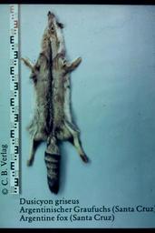 | Keywords: Dusicyon griseus fur skin (Santa Cruz).jpg en Argentine fox Santa Cruz Dusicyon griseus Fur skin collection Bundes-Pelzfachschule Frankfurt/Main Germany de Argentinischer Graufuchs Santa-Cruz-Fuchs Dusicyon griseus Aus der Fellsammlung der ehemaligen Bundes-Pelzfachschule heute Frankfurter Schule für Bekleidung und Mode Frankfurt/Main Gesammelt unter Studiendirektor Ludwig Brauser Derzeit eingelagert in den Räumen des Senckenbergmuseums Frankfurt/Main Aus dem Museums-Geschäftsbericht 2006 Umlagerung der gesamten Fellsammlung und Planungen für ein neues Unterbringungs- und Lagerkonzept der Fellsammlung Own Mickey Bohnacker Presse-Fotograf Frankfurt/Main ca 1978 Die freie Nutzung erfolgt mit zusätzlichem Einverständnis des C B -Verlag Carl Boldt Peter Geselius Pseudalopex griseus Fur skin collection Frankfurt/Main Gray fox fur-skins |