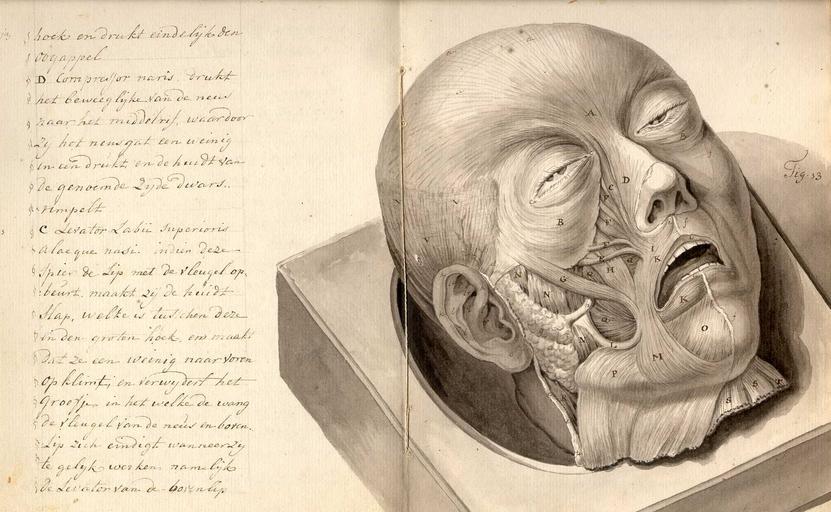 | Keywords: Dutch p18 19.jpg en Anonymous tise on physiognomy Netherlands ca 1790 Physiognomy is the science of relating an individual's character personality and temperament to the shape of his or her face head and/or body The theories behind it go back to Hippocrates who believed that physical characteristics of the human body revealed personality traits; Aristotle performed studies on how hair limbs and facial features predicted personality and temperament Such theories thrived throughout the Middle Ages and the Renaissance and the noted Girolamo Cardano 1501-1576 was one of its main proponents By the 18th century the study of physiognomy was still taken very seriously as a medical topic with important additions to the field made by Johann Caspar Lavater 1741-1801 Franz Josef Gall 1758-1828 attempted to make its study even more scientific by measuring human and animal craniums to find correlations between skull shape and behavior founding the field of phrenology The author of this fine manuscript treatise and sketchbook on physiognomy is unknown The text is written in Dutch and was probably composed in the 1790s; it is possible that it was created as a dissertation by a medical student Further Reading Hagner M Prolegomena to a history of radical brains in the nineteenth century physiognomics phrenology brain anatomy Physis Riv Int Stor Sci 1999; 36 2 321-38 Howells J G ; and M L Osborn A reference companion to the history of psychology Westport CT Greenwood Press 1984 Jenkinson J Face facts a history of physiognomy from ancient Mesopotamia to the end of the 19th century J Biocommun 1997; 24 3 2-7 An example of the 20th-century clinical literature on physiognomy Paterson D G Physique and intellect New York The Century Company 1930 2013-11-18 09 57 42 https //www nlm nih gov/exhibition/historicalanatomies/dutch_home html Anonymous tise on physiognomy Netherlands ca 1790 PD-Art Historical anatomy Uploaded with UploadWizard Face and neck muscles Physiognomy |