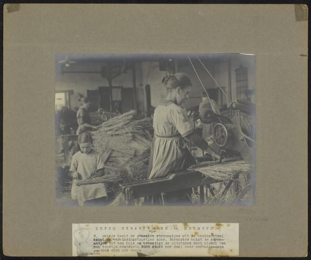 Keywords: nationaal archief nationaal archief nationaalarchief iconclass:n=47h6 factory straw kinderarbeid child labor childlabor meisjes girls Beschrijving: Meisjes in de Dutch Straw Works Company (de strohulzenfabriek) te Helmond. Het ene meisje haalt de stromatjes uit de naaimachine, de andere buigt de matjes tot huls en bevestigt de uiteinden door middel van een touwtje. De productie ligt op gemiddeld 3000 stuks per dag Datum: Onbekend Vervaardiger: J.D. Filarski Formaat: 17.5 x 23.5 cm Bestanddeelnummer: 2.24.03_2256_256-1579 Fotocollectie: Arbeidsinspectie Auteursrechten: Nationaal Archief Voor meer informatie over het Nationaal Archief: www.nationaalarchief.nl Voor meer foto's uit deze en andere collecties, bezoek onze Beeldbank: beeldbank.nationaalarchief.nl/ U kunt ons helpen onze kennis van de fotocollecties te verrijken door tags en commentaren toe te voegen. Herkent u mensen of locaties of heeft u een bijzonder verhaal te vertellen bij één van de foto’s, laat dan een reactie achter (als u ingelogd bent bij Flickr) of stuur een mailtje naar: flickrthecommons@nationaalarchief.nl! Beschrijving: Meisjes in de Dutch Straw Works Company (de strohulzenfabriek) te Helmond. Het ene meisje haalt de stromatjes uit de naaimachine, de andere buigt de matjes tot huls en bevestigt de uiteinden door middel van een touwtje. De productie ligt op gemiddeld 3000 stuks per dag Datum: Onbekend Vervaardiger: J.D. Filarski Formaat: 17.5 x 23.5 cm Bestanddeelnummer: 2.24.03_2256_256-1579 Fotocollectie: Arbeidsinspectie Auteursrechten: Nationaal Archief Voor meer informatie over het Nationaal Archief: www.nationaalarchief.nl Voor meer foto's uit deze en andere collecties, bezoek onze Beeldbank: beeldbank.nationaalarchief.nl/ U kunt ons helpen onze kennis van de fotocollecties te verrijken door tags en commentaren toe te voegen. Herkent u mensen of locaties of heeft u een bijzonder verhaal te vertellen bij één van de foto’s, laat dan een reactie achter (als u ingelogd bent bij Flickr) of stuur een mailtje naar: flickrthecommons@nationaalarchief.nl! |