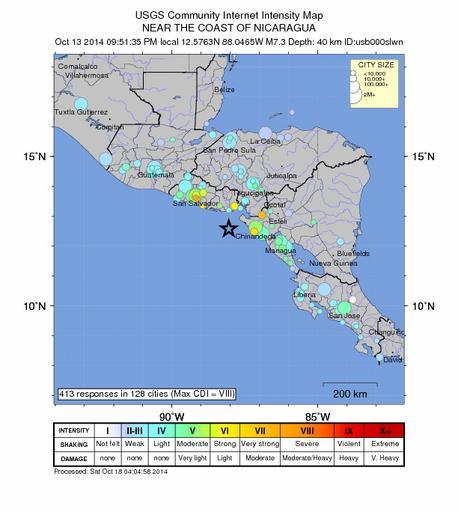 Keywords: DYFI El Salvador earthquake, 2014.jpg es Intensidades Mercalli del terremoto de El Salvador del 13 de octubre del 2014 2014-10-18 17 36 02 http //earthquake usgs gov/earthquakes/eventpage/usb000slwn dyfi USGS other versions PD-USGov Uploaded with UploadWizard Earthquake maps |