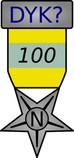 Keywords: Dyk100N.svg own User Certes Proposed award for Award for 100 DYK nominations at Did you know Own work by Certes following request at WP GL/I Certes en Original upload log en wikipedia FtCG page en wikipedia Dyk100N svg wikitable Date/Time Dimensions User Comment - 16 09 2 January 2010 203 × 431 6 329 bytes Certes w en <nowiki> Proposed award for Award for 100 DYK nominations at Own work by following request at WP GL/I </nowiki> Wikipedia Did you know awards |