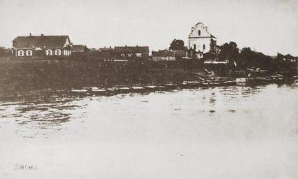 Keywords: Dzisna, Dźvina. Дзісна, Дзьвіна (XIX).jpg Дзісьне з боку акі Дзьвіна Целеш В Га ады Бела усі на ста ых паштоўках н Бела усь 2001 Author century 19 PD-old Church of the Immaculate Conception in Dzisna History of Dzisna