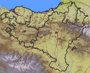 Keywords: E3d txikia.png Laburpena eu Euskal Herriko mapa fisikoa DEM SRTM3 published by the NASA http //seamless usgs gov Cities own work digitalization based on Landsat imagery http //www landsat org Rivers own work digitalization based on French IGN information in the French side http //www ign fr/telechargement/MPro/produit/SCANS/SCAN1000_FR_SO_L93 zip and Spanish IGN information in the Spanish side http //www idee es/clientesIGN/wfsClient/index html lang EN Roads own work digitalization based on OpenStreetMap data French IGN information in the French side http //www ign fr/telechargement/MPro/produit/SCANS/SCAN1000_FR_SO_L93 zip and Spanish IGN information in the Spanish side http //www idee es/clientesIGN/wfsClient/index html lang EN Boundaries own work Map created with gvSIG ArcGIS and GIMP Asier Sarasua Garmendia Assar 2008-09-25 Maps of the Basque Country |
