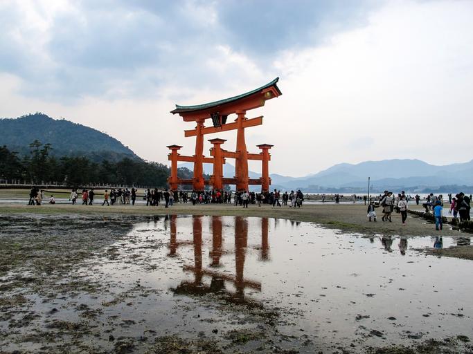 Keywords: 巖 island shrine itsukushima shinto shrine itsukushima floating torii low water low tide miyajima hiroshima prefecture japan