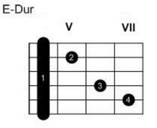 Keywords: E-Dur Barré.jpg Eigenanfertigung 2005-11-05 own assumed Red Rooster Guitar chords in standard tuning