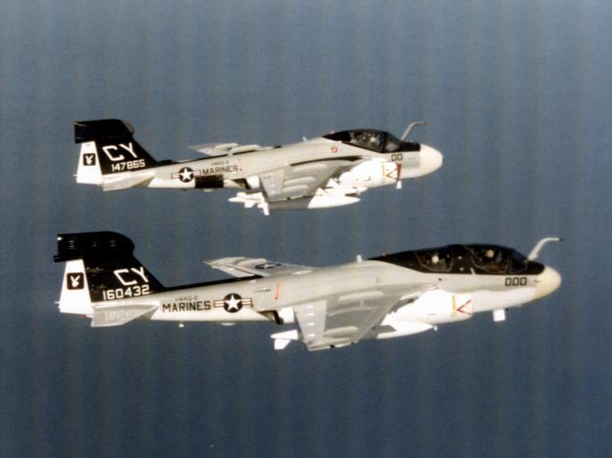 Keywords: EA-6A and EA-6B of VMAQ-2 in flight c1977.jpg A U S Marine Corps Grumman EA-6A Intruder BuNo 147865 and a EA-6B-60-GR Prowler BuNo 160432 of Marine Tactical Electronic Warfare Squadron 2 VMAQ-2 Playboys in flight http //collections naval aviation museum/emuwebdoncoms/pages/doncoms/AdvQuery php U S Navy National Museum of Naval Aviation photo No http //collections naval aviation museum/emuwebdoncoms/pages/doncoms/Display php irn 3898 QueryPage 2Femuwebdoncoms 2Fpages 2Fdoncoms 2FAdvQuery php 1996 253 7057 004 ca 1977 U S Navy PD-USGov-Military-Navy EA-6A Intruder EA-6B Prowler US Marine Corps Marine Tactical Electronic Warfare Squadron 2 |