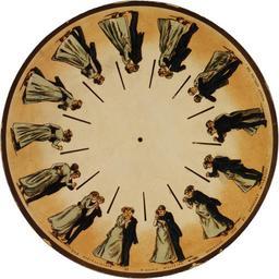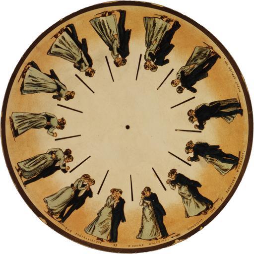 Keywords: Eadweard Muybridge's phenakistoscope, 1893.jpg <center> background black; text-align center; color white; cellpadding 3 cellspacing 0 - 7 style font-size 120 ; <font color white>Eadweard Muybridge's</font> <font color white>Phenakistoscope</font> A Couple Waltzing<br /> - 160px<br />Original disc background white; color black; font-weight bold; 160px<br/>Original disc white bg 160px<br />Detail view 160px<br />Mirror simulation 160px<br />Spinning disc - 5 style background white; color black; CREATOR Muybridge Eadweard 1830-1904 artist <br /> TITLE The zoopraxiscope - a couple waltzing No 35 title from item <br /> SUMMARY Images on a disc which when spun gives the illusion of a couple dancing <br /> MEDIUM 1 print lithograph color <br /> CREATED/PUBLISHED c1893 14699Y U S Copyright Office Copyright by Eadweard Muybridge expired <br /> SUBJECTS Dance--1890-1900; Locomotion--1890-1900; Optical illusions--1890-1900 <br /> FORMAT Optical toys 1890-1900; Lithographs Color 1890-1900 Exhibited at Moving Pictures The Un-easy Relationship between American Art and Early Film at the Williams College of Art MA and other venues 2005-2007 <small>Call number LOT 10440 item P P Reproduction number LC-DIG-ppmsca-05949 digital file from original print LC-USZC4-7690 color film copy transparency ; Digital ID ppmsca 05949 digital file from original cph 3g07690 digital file from color film copy transparency ; Card 00650865 No known restrictions on publication </small> <small>Note The images show a phenakistoscope not a zoopraxiscope </small> - 7 LOC-image ppmsca 05949 </center> PD-old 1893 works Motion studies by Eadweard Muybridge Phenakistoscope Waltz in art Muybridge Dancing couples in art |