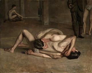 | Keywords: Eakins, Thomas (1844-1916) - Lottatori 3.jpg Artwork Creator Thomas Eakins This is the final result after the picture and the sketch which can be seen below 1899 oil canvas cm 122 87 152 4 institution Los Angeles County Museum of Art Art of the Americas Building 313 http //collections lacma org/node/212740 Los Angeles County Museum of Art object history credit line Gift of Cecile C Bartman and The Cecile and Fred Bartman Foundation accession number M 2007 1 1 source <br/>2 LACMA<br/>3 20123 <br/>4 source <br/>5 LACMA <gallery> Image Eakins Thomas 1844-1916 - Lottatori 1 jpg 1 Picture Image Eakins Thomas 1844-1916 - Lottatori 2 jpg 2 Partial sketch Image Study for Wrestlers jpg 3 Full sketch Image Eakins Thomas 1844-1916 - Lottatori 3 jpg 4 Painting </gallery> Q8037781 PD-old-auto-1923 1916 DEFAULTSORT Eakins Thomas; Wrestler 1899; LACMA Paintings by Thomas Eakins in the Los Angeles County Museum of Art Paintings by Thomas Eakins Wrestlers Eakins |