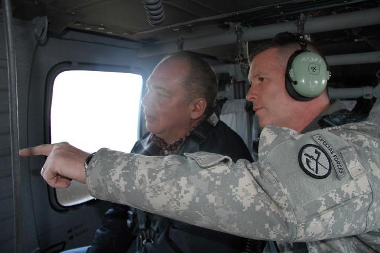 | Keywords: Earl Ray Tomblin and James Hoyer.jpg  West Virginia Adjutant General Maj Gen James A Hoyer points out storm damage near Prickett's Fork W Va to West Virginia Governor Earl Ray Tomblin aboard a West Virginia National Guard UH-60 Blackhawk helicopter March 3 2012 Tomblin Hoyer and other state officials travelled to speak with victims of high winds caused by a large storm system that moved through the southern part of the state March 2 2012 The West Virginia National Guard deployed crews into some of the affected areas to work with local and state authorities to assess the damage and coordinate the response of the WVNG West Virginia Air National Guard photo by Master Sgt Andrew M Lamoreaux https //www flickr com/photos/thenationalguard/6956428031/ West Virginia Tornado Response 2012-03-05 13 00 https //www flickr com/people/33252741 N08 The National Guard PD-USGov The National Guard https //flickr com/photos/33252741 N08/6956428031 2016-04-11 23 50 28 United States Government Work 2012 in West Virginia Earl Ray Tomblin March 2012 in the United States |