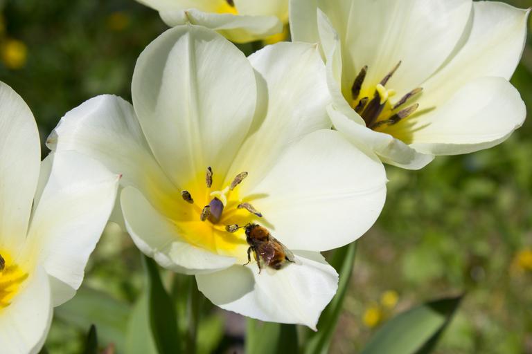 Keywords: early bloomer flower with bee garden spring bee blossom bloom close signs of spring nature flora spring flower white flower