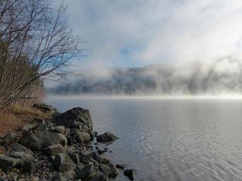 Keywords: early morning sunrise clouds canim lake british columbia canada scenery weather beautiful nature mood outdoor reflections morning glory countryside landscape fog tree