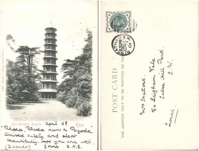 Keywords: public domain publicdomain text drawing sketch I believe that this is the earliest real photo postcard of Kew Gardens that I own. Postmarked Streatham, 16 April 1901. Sent by "C.M.S" to a Mrs Shattock, 84 Leigham Vale, Tulse Hill Park, London. This would appear to be the house on Google Street View - maps.google.co.uk/maps?q=84+Leigham+Vale,+Lambeth&hl=... and see comment below for more details about Alice Shattock, and the possibility that 'C.M.S' is her daughter Constance M. I believe that this is the earliest real photo postcard of Kew Gardens that I own. Postmarked Streatham, 16 April 1901. Sent by "C.M.S" to a Mrs Shattock, 84 Leigham Vale, Tulse Hill Park, London. This would appear to be the house on Google Street View - maps.google.co.uk/maps?q=84+Leigham+Vale,+Lambeth&hl=... and see comment below for more details about Alice Shattock, and the possibility that 'C.M.S' is her daughter Constance M.