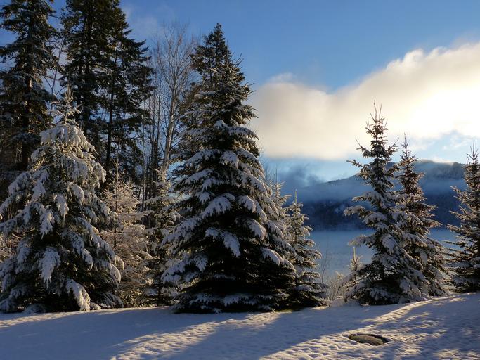 Keywords: early winter dream snow cold canim lake british columbia canada scenery landscape nature trees heavy snow forest season sunny