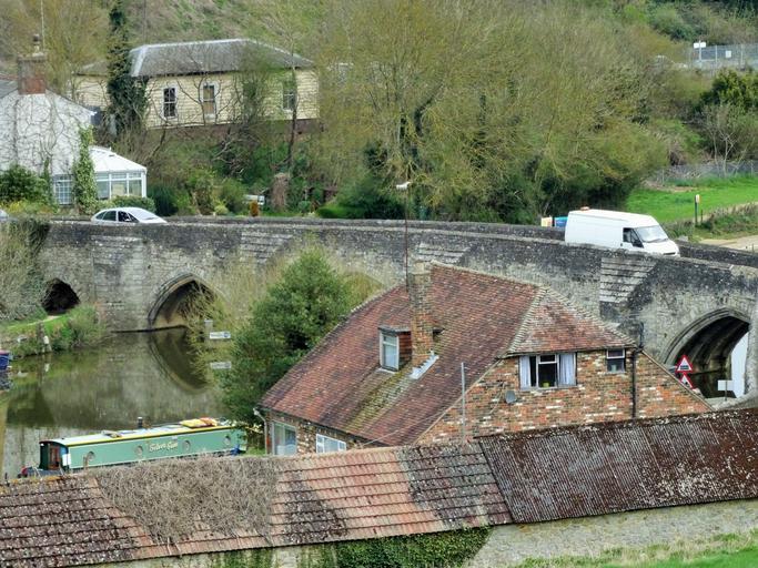 Keywords: outdoor East Farleigh Bridge is a road bridge across the River Medway in East Farleigh, Kent, England. The bridge is medieval and was probably constructed in the 14th century. It comprises four arches, spanning the river and a smaller, later arch spanning the north bank. A long retaining wall carrying the road over the low lying meadow to the south of the river has a blind arch on one side. The bridge is a Grade I listed building and a scheduled ancient monument.[ East Farleigh Bridge is a road bridge across the River Medway in East Farleigh, Kent, England. The bridge is medieval and was probably constructed in the 14th century. It comprises four arches, spanning the river and a smaller, later arch spanning the north bank. A long retaining wall carrying the road over the low lying meadow to the south of the river has a blind arch on one side. The bridge is a Grade I listed building and a scheduled ancient monument.[