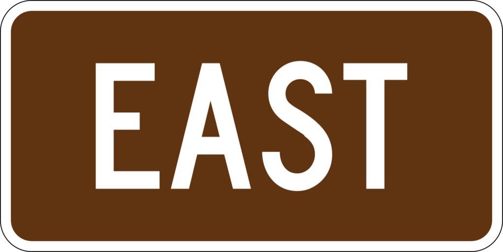 | Keywords: East plate small brown.svg 600 mm by 300 mm 24 in by 12 in east plate with small letters made to the specifications of the http //mutcd fhwa dot gov/SHSm/Guide pdf 2004 edition of Standard Highway Signs sign M3-2 Uses the http //www triskele com/fonts/index html Roadgeek 2005 fonts United States law does not permit the copyrighting of typeface designs and the fonts are meant to be copies of a U S Government-produced work anyway Colors are from http //mutcd fhwa dot gov/kno-colorspec htm Pantone Brown 469 converted to RGB by http //www reeddesign co uk/test/pantone2rgb html The outside border has a width of 1 1 mm and a color of black so it shows up; in reality signs have no outside border own Ltljltlj User Ltljltlj/Template M3-2 - Cardinal Direction Auxiliary Diagrams of brown and white road signs |