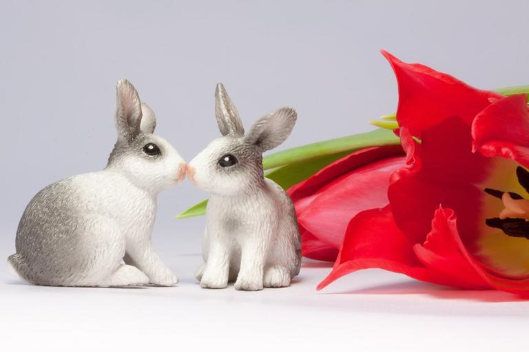 Keywords: easter bunny kiss spring frühlingsanfang spring awakening easter flower tulip red green grey white love close birthday toys macro