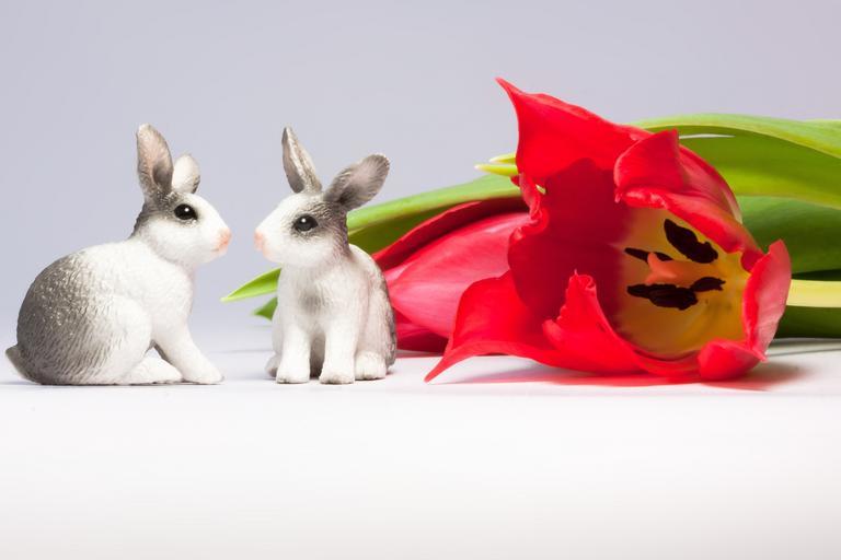 Keywords: easter bunny tulip spring frühlingsanfang spring awakening easter flower red green grey white close birthday toys macro
