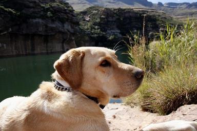 Keywords: easter cape dog labradore rocks dam mountains face canine domestic animal pet hike picnic