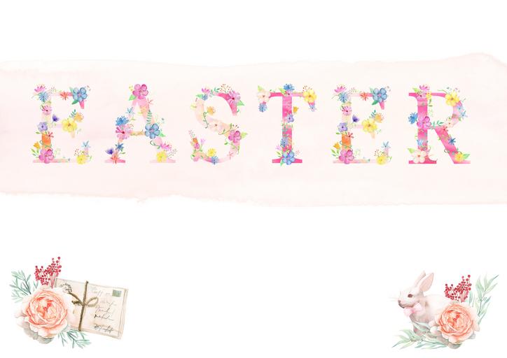 Keywords: easter spring bunny rabbit holiday colorful celebrate season seasonal white background template flowers