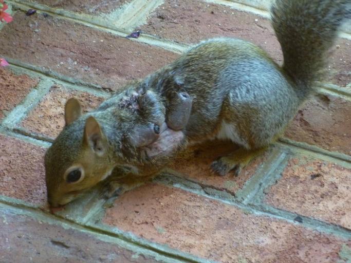 | Keywords: Eastern Gray Squirrel suffering from warbles.jpg Dieses Grauhörnchen ist von Fliegenlarven der Gattung Cuterebrinae Familie Oestridae Dasselfliegen befallen und bildet Dasselbeulen aus Der Befall ist örtlich und normalerweise nicht dauerhaft schädigend für das Hörnchen Sobald die Larven schlüpfen heilen die Wunden gewöhnlich obwohl sie mit Bakterien infiziert werden können oder durch Entzündung Abszesse bilden können Dieser Zustand ist relativ häufig und kann nicht auf andere Tiere übergehen kann jedoch andere Tiere treffen Es ist auch bei Haus- und Nutztieren “ wie Vieh “ möglich wobei dies aufgrund heutiger Parasiten-Steuerungsverfahren nicht häufig geschieht Fotografiert in Midlothian Virginia USA en This squirrel is infested with fly larvae of the genus Cuterebrinae family Oestridae a condition also known as warbles The infection is localized and not usually permanently harmful to the squirrel Once the larvae hatch the wounds will usually heal although they can become infected with bacteria and form abscesses The condition is relatively common and cannot spread to other animals Other animals can also become infected with warbles and it is possible to see cases in domestic animals such as cattle although nowadays with more fly and parasite control methods it doesn't happen very often Photographed in Midlothian VA own Martin Bennett 2009-10-04 Sciurus carolinensis Oestridae |