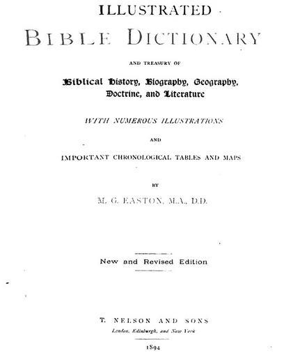 | Keywords: Easton's Bible Dictionary 1894.jpg en Easton's Bible Dictionary 1894 book cover Google Books http //books google com/books id KspEAAAAYAAJ printsec frontcover dq Easton E2 80 99s+Bible+Dictionary hl en ei 4owsTOnUCYf-nAe01p30Ag sa X oi book_result ct result resnum 6 ved 0CE0Q6AEwBQ v onepage q f false M G Easton 1894 1897 PD-old Title pages |