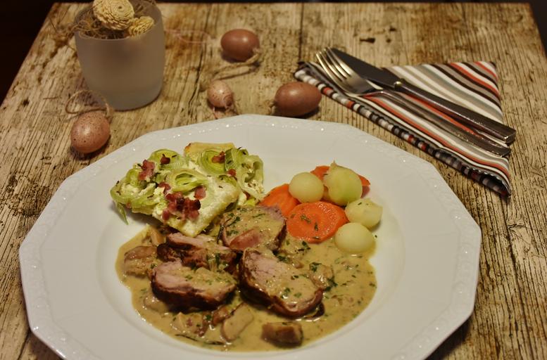 Keywords: eat court meal meat vegetables food delicious tasty main course cook nutrition menu plate frisch enjoy gourmet