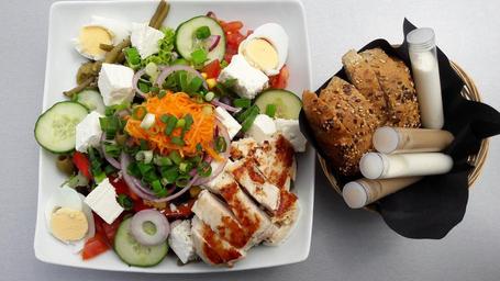 Keywords: eat food meat court delicious salad vegetables benefit from nutrition healthy lunch gourmet vitamins enjoy