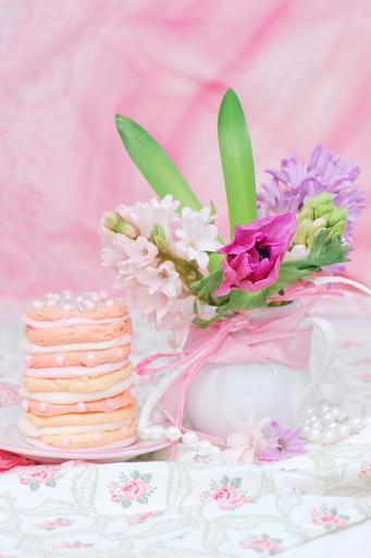 Keywords: eat food sugar calories tart sweet cookies dessert summer flowers white pink bouquet of flowers romantic romance buttercream