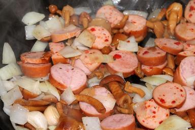 Keywords: eat pork sausage mushrooms stockschwaemchen onions