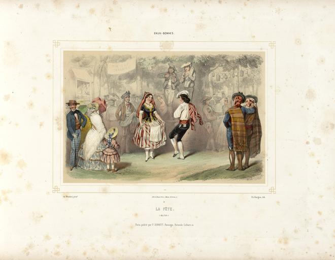 | Keywords: Eaux-Bonnes - La fête (24 juin) - Fonds Ancely - B315556101 A MONTAUT 004.jpg Fait partie de deux albums réunis et publiés par F Sinnett à Paris Lith de Becquet frères à Paris Les planches du premier album ont été dessinées par Montaut et lithographiées par Bargue Les planches du second album ont été dessinées et lithographiées par Charles Maurice Le titre du premier album est lithographié Le premier album est signalé dans la bibliographie pyrénéiste de Jacques Labarère comme étant très rare Pièce jointe photocopie en n et b d'une lithographie de Montaut intitulée Col de Tortes - Traversée de la montagne Ancely René 1876 - 1966 Possesseur fre public domain domaine public B315556101_A_MONTAUT_004 jpg image/jpeg 1 f de pl lithogr ; 30 cm oblong Sinnet F Éditeur Bargue Charles 1826 -1883 Lithographe Becquet 18 - 18 ; imprimeur Lithographe http //numerique bibliotheque toulouse fr/collect/general/index/assoc//ark /74899/B315556101_A_MONTAUT_004 dir/B315556101_A_MONTAUT_004 jpg A-MONTAUT 2 Creator Henri de Montaut http //catalogues toulouse fr/web2/tramp2 exe/do_keyword_search/log_in setting_key BMT1 servers 1home query p001729 vignette http //numerique bibliotheque toulouse fr/collect/general/index/assoc//ark /74899/B315556101_A_MONTAUT_004 dir/B315556101_A_MONTAUT_004_thumb jpeg by 1852 Eaux-Bonnes - La fête 24 juin B315556101_A_MONTAUT_004 lithography - print - colors - color lithograph Henri de Montaut 1852 lithographs Lithographs of France Historical images of Eaux-Bonnes Historical images of Pyrénées-Atlantiques People of Pyrénées-Atlantiques Midsummer Parties Folk dance of France Crowds in art Men in art Women in art Children in art National costumes in art History of clothing Male clothing Female clothing Umbrellas in art Hats in art Caps in art Berets Shawls Dresses in art Jackets Vests Bodices Skirts in art Trousers Gaiters Shoes in art Musical instruments Bowed string instruments Wind instruments |