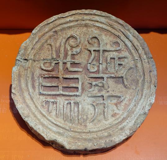 | Keywords: Eaves tile with reversed inscription 'wansui' (longevity), Nanyue Kingdom period, from the site of Nanyue Kingdom Palace - Hong Kong Museum of History - DSC00848.JPG Bề mặt ngói ống với dòng chữ Vạn Tuế 萬歲 ngược được tìm thấy tại di tích cung điện Phiên Ngung th i nhà Triệu nước Nam Việt hiện trưng bày tại Bảo tàng Lịch sử Hồng Kông en Exhibit in the Hong Kong Museum of History Hong Kong This artwork is old enough so that it is in the public domain Photography was permitted in the museum without restriction 2014-07-27 01 47 43 own Daderot other versions PD-100 cc-zero Chinese ceramics in the Hong Kong Museum of History Uploaded with UploadWizard Ceramics of Nanyue |