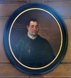 | Keywords: Eberbach Mönchsrefektorium Porträtgalerie 01 Theobald.jpg Kloster Eberbach Mönchsrefektorium Gemälde aus der Galerie barocker Porträts von Eberbacher Äbten die frühen sicherlich als Idealporträts ohne Ähnlichkeit zur abgebildeten Person ; Abt Theobald own 2015 WolfD59 Mönchsrefektorium Kloster Eberbach Abbots of Eberbach Abbey |