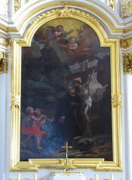 | Keywords: Ebersmunster Abbatiale064.JPG fr Alsace Bas-Rhin Ebersmunster Eglise abbatiale Saint-Maurice Autel secondaire St-Benoît 1720-1730 own Rh-67 2011 cc-by-sa-3 0 Artwork / Œuvre d'art / Kunstwerk oil canvas cm 330 175 Abbatiale Saint-Maurice Ebersmunster IM67007588 object history Les tableaux d'autel inférieurs sont signés par le peintre Andreas von Wihl de Sélestat ; le tableau de la Déploration est daté 1720 celui de saint Benoît 1730 ; les tableaux des couronnements ne sont pas datés mais appartiennent certainement à la même campagne other versions Ralph Hammann PD-old-100 accession number Photographs of Ebersmunster by Ralph Hammann Taken with Canon PowerShot SX20 IS Autel de Saint-Benoît Ebersmunster Baroque church paintings in Alsace 18th-century church paintings in Alsace Paintings of Benedict of Nursia Paintings of putti in France |