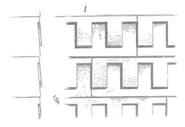 Keywords: Ecailles.eglise.Thaon.png La curieuse église de Thaon près de Caen nous montre une partie de ses parements extérieurs décorés d'écailles de forme carrée rappelant ces revêtements en bardeaux si fort en usage dans les constructions privées construites en pans-de-bois Ces écailles sont quelquefois superposées ou le plus souvent contrariées c'est-à-dire pleins sur vides ainsi que l'indique la fig 1 Église Saint-Pierre de Thaon
