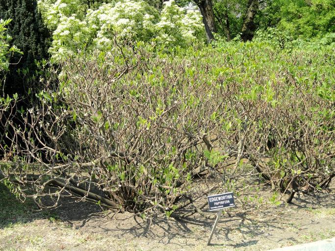 | Keywords: Edgeworthia papyrifera - Villa Taranto (Verbania) - DSC03740.JPG Edgeworthia papyrifera Botanical specimen on the grounds of the Villa Taranto Verbania Lake Maggiore Italy I took this photograph 2011-04-19 07 25 14 Daderot Public domain Specimens in the Villa Taranto Verbania Edgeworthia papyrifera |