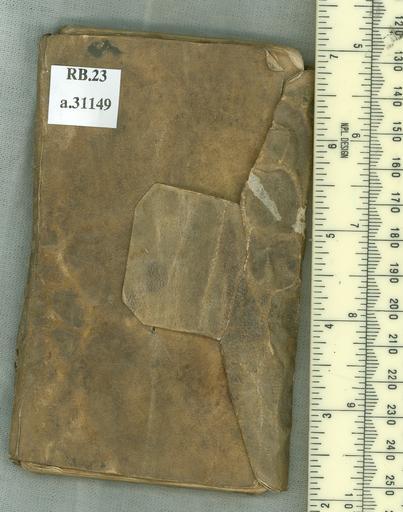 | Keywords: Edinburgh almanack, for the year M.DCC.LX. Being leap year, and of the Julian period 6473. Edinburgh - Printed and sold by R. Fleming, and the widow of James Voy in the Advocate's Close, and - Upper cover (RB23a31149 ).jpg Style Pocket book; Caption Upper cover; Colour White / cream; Edge Unspecified exhibition history Decorative Technique Unspecified; Cover Material Parchment may include vellum With flap passing over fore edge and tucking into slit on upper cover Ink ms note on lower cover; Note book of John Reid my great grandfather ob 1811 object history Text 1760; Edinburgh; Unspecified object type Cc-zero place of creation Binding Scotland place of discovery Unspecified British Library image http //www bl uk/catalogues/bookbindings/LargeImage aspx RecordId 020-000017653 ImageId ImageId 56648 Copyright BL Edinburgh almanack for the year M DCC LX Being leap year and of the Julian period 6473 Edinburgh Printed and sold by R Fleming and the widow of James Voy in the Advocate's Close and by the booksellers in town and country 1760 Uploaded with GWToolset Edinburgh almanack for the year M DCC LX Being leap year and of the Julian period 6473 Edinburgh Printed and sold by R Fleming and the widow of James Voy in the Advocate's Close and - Upper cover RB23a31149 http //www webarchive org uk/bldatasets/bindings/rb23a31149 jpg Bookbinding 18th-century bookbinding British Library Bookbindings |
