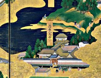 | Keywords: Edo l314.jpg TOP OF THIRD PANEL Left Screen Tameike Pond Hie Sanno Shrine and shops in front of it Ii Kamon no kami residence View of Edo Edo zu pair of six-panel folding screens 17th century http //www rekihaku ac jp/e_gallery/edozu/l31 html century 17 Author PD-art View of Edo folding left screen 17th century |