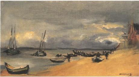 Keywords: Édouard Manet - Marine, Arcachon, temps d’orage.jpg Artwork creator Édouard Manet 1871 oil canvas 20 6 x 36 7 cm Private Collection unknown accession number object history credit line RW 167 Sandra Orienti Manet Paintings of seascapes by Édouard Manet PD-old-100