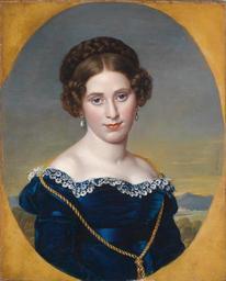 | Keywords: Eduard Friedrich Leybold - Bildnis einer Dame vor Landschaftshintergrund (1822).jpg Eduard Friedrich Leybold de 1798-1879 Porträt einer jungen Frau / Bildnis einer Dame vor Landschaftshintergrund 1822 Oil on canvas cm 72 58 5 object history credit line Leybold pinx 1822 ~ center right signature and date accession number 1 http //www nagyhazi hu/english/kereses_gyors php Nagyházi Galéria és Aukcióház Budapest<br/>2 http //www dorotheum com/auktionen/auktion-10353-olgemalde-und-aquarelle-des-19-jahrhunderts html no_cache 1 source resultList offset 1 Palais Dorotheum 2013 12 11 Lot Nr 258 PD-old-100 Eduard Friedrich Leybold 19th-century portrait paintings location missing 1822 19th-century portrait paintings of unidentified women 1822 1822 oil on canvas paintings Portrait 1822 portrait paintings from Germany 19th-century oil oval portraits of women at bust length 1822 Blue clothing in art male 1822 Females with pearl earrings in art 1822 Images from Dorotheum |