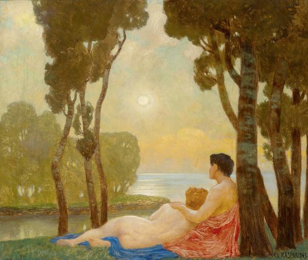 | Keywords: Eduard Kasparides Vollmondnacht.jpg Vollmondnacht nachgezogen oil on canvas 76 x 89 cm http //www dorotheum com Dorotheum turn of the century 20 Eduard Kasparides 1858-1926 PD-old-80 Images from Dorotheum Eduard Kasparides Female buttocks in painting Paintings of nude recumbent people Paintings of nude recumbent women on the ground outdoors |