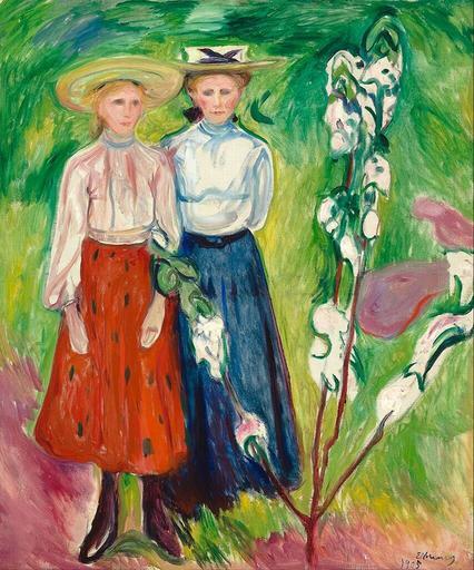 | Keywords: Edvard Munch - 1905 - Two Girls under an Apple Tree in Bloom - Boijmans 2426 (MK).jpg Artwork Creator Edvard Munch 1905 Ucfirst Oil on canvas cm 131 111 Institution Museum Boijmans Van Beuningen 25 place of discovery object history ProvenanceEvent 1957 purchase LangSwitch el das the el le o ~ Boijmans Rotterdam exhibition history Een prikkelcollectie De collectie verrijkt credit line EMunch / 1905 signature/date bottom right ~ accession number 2426 MK place of creation Åsgårdstrand collectie boijmans nl http //collectie boijmans nl Home http //collectie boijmans nl/en/collection/2426- mk Info http //boijmansp blob core windows net/images/2426- 28mk 29_large jpg Pic 2426 mk Q18891322 Custom license marker 2015 05 09 PD-old-auto-1923 1944 Norway Uploaded with UploadWizard 1900s paintings by Edvard Munch 1905 oil on canvas paintings Norwegian paintings in the Museum Boijmans Van Beuningen Munch Museum Boijmans Van Beuningen - Room 25 Munch |