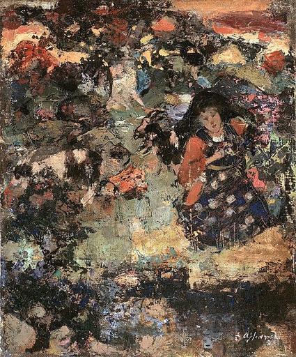 Keywords: Edward Atkinson Hornel - A Girl And Goats 1891.jpg A Girl And Goats oil on canvas 1891 Creator Edward Atkinson Hornel PD-old-auto 1933 Edward Atkinson Hornel Template artwork possible