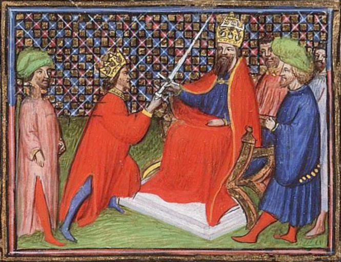 Keywords: Edward III becomes Vicar to the Emperor Ludwig V.jpg en Jean Froissart Chroniques Vol I Edward III becomes Vicar to the Emperor Ludwig V Place of origin date Paris Virgil Master illuminator ; c 1410 Material Vellum ff 382 385x288 243x187 mm 42 lines littera cursiva Binding 18th-century brown leather; gilt; with coat of arms of Stadholder William V Decoration 1 two-column miniature 170x180 mm ; 29 column miniatures 115/65x95/80 mm ; 1 historiated initial 45x50 mm ; decorated initials with border decoration ff 1r 24r 36r 62r 74v etc Provenance Louis de Luxemburg conn štable de France d 1475; signature erased ; by descent to his granddaughter Françoise de Luxembourg and her husband Philip of Cleves d 1528; coat of arms with label over erasure; signature ; purchased in 1531 from Philip's estate by HenriIII Count of Nassau d 1538 ; by descent to the Princes of Orange-Nassau the later Stadholders at The Hague; carried off in 1795 to Paris by the French and restituted to the Koninklijke Bibliotheek in 1816 http //www kb nl/manuscripts/show/manuscript/72+A+25 Jean Froissart Chroniques Vol I Virgil Master illuminator ca 1410 Edward III of England Louis IV Holy Roman Emperor Chroniques de Froissart vol 1 - Den Haag KB 72 A 25 c 1410 PD-old-100 |