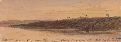 MAKE A MEME View Large Image Edward Lear - Below Ekhmim - Google Art Project.jpg inscribed in brown ink lower left 6 15 PM March 1 1867 below Ekminn Shadoofs black off gold all banks deep treson black 577 ; Verso in graphite lower left 309 Not on View Watercolor with ...