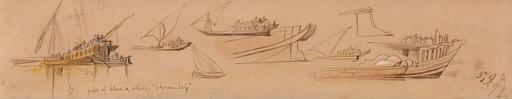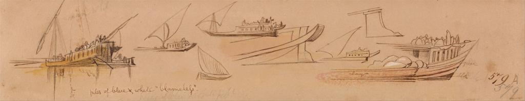 Keywords: Edward Lear - Boats on the Nile - Google Art Project.jpg inscribed in brown ink lower right 97 ; Verso in graphite upper left 20 up Top Not on View Watercolor with pen in brown ink and gouache over graphite on moderately thick slightly textured blue wove paper sails studies visual works figures representations genre subject boats special url_id WwFo-s-MaEUwKw PD-old-100-1923 1888 Egypt by Edward Lear Nile in art Google Art Project works by Edward Lear |