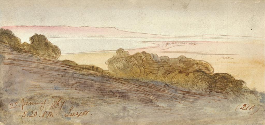 | Keywords: Edward Lear - Luxor - Google Art Project.jpg inscribed in brown ink lower left 22 January 1867 5 20 PM Luxor ; in brown ink lower right 211 ; Verso in graphite upper left 153 ; in graphite center 53 up Top ; in graphite crossed out center right next below top left Not on View Watercolor with pen in brown ink over graphite on moderately thick slightly textured cream wove paper sky water river hill landscape special url_id HwE8Mjtgj1aDvA PD-old-100-1923 1888 Egypt by Edward Lear Historical images of Luxor Google Art Project works by Edward Lear |