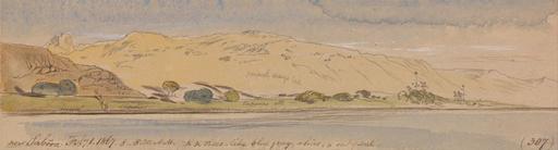 Keywords: Edward Lear - Near Sabooa - Google Art Project.jpg inscribed in brown ink lower left near Sabooa Feby 1 1867 8-8 30 AM A A Trees- like blue gray olives a sort of s ont ; in brown ink lower right 307 ; Verso in graphite upper left 186 197 Not on View Watercolor with pen in brown ink and white gouache over graphite on moderately thick moderately textured wove paper mounted on thick moderately textured wove paper water riverbank hills trees landscape special url_id HQFht-j62ytuDA PD-old-100-1923 1888 Egypt by Edward Lear Google Art Project works by Edward Lear