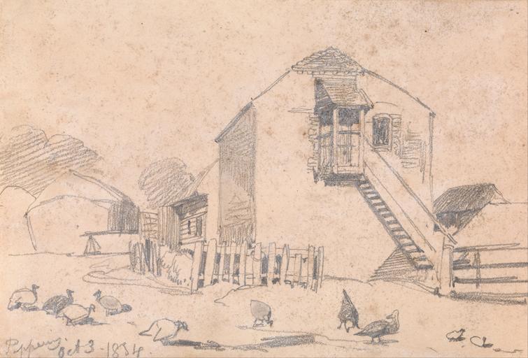 | Keywords: Edward Lear - Peppering, Oct. 3-1834 - Google Art Project.jpg Inscribed in graphite lower left Peppering Oct 3-1834 ; Verso inscribed in pen with brown ink center 52 upright middle right ; in graphite lower center 166 D Gallup Not on View Graphite on moderately thick slighty textured beige wove paper poultry steps buildings fence genre subject special url_id 5AG_-RMMdwuCcA PD-old-100-1923 1888 Drawings by Edward Lear Google Art Project works by Edward Lear | ||||
